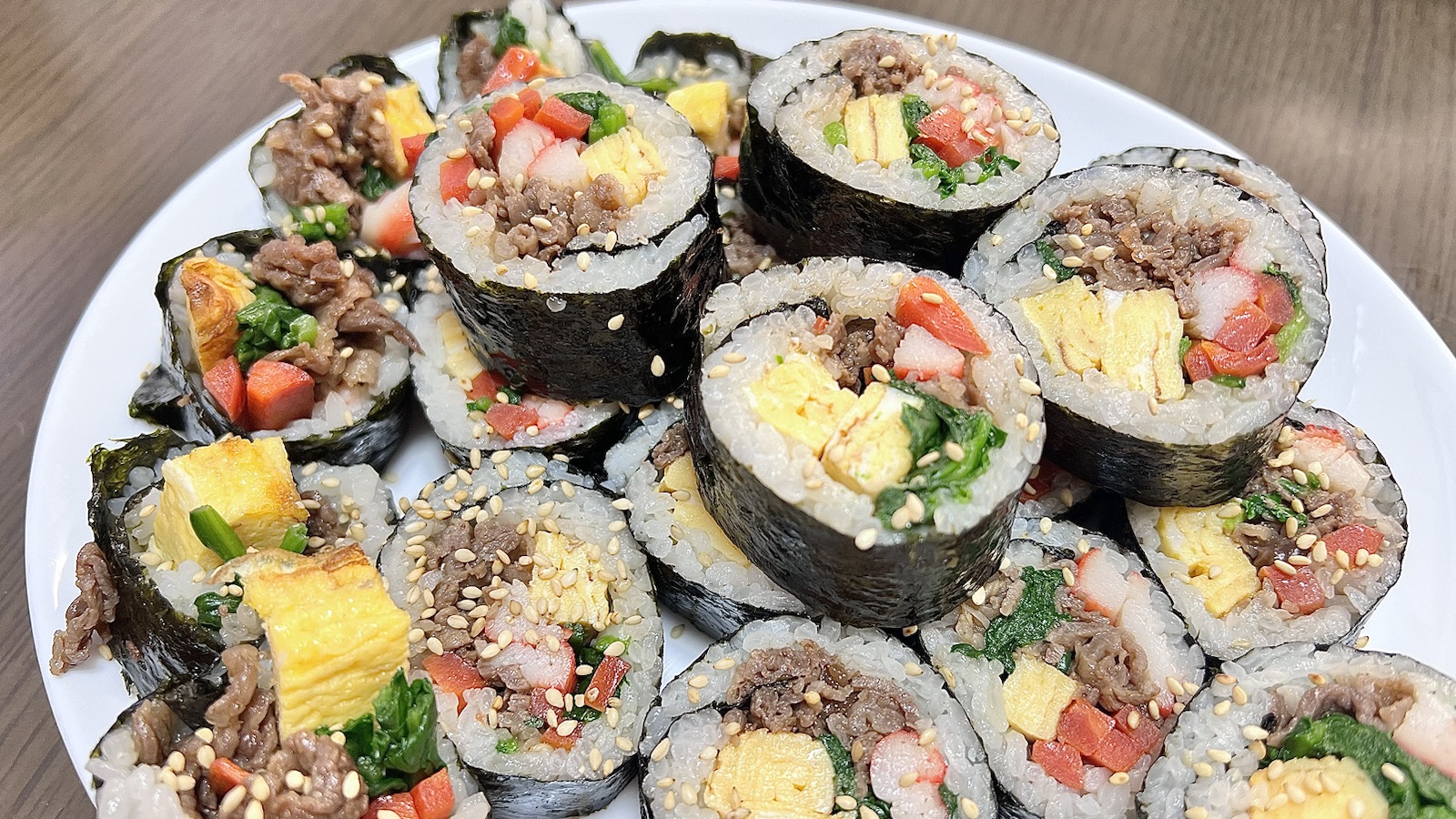 毎年お正月には実家でキンパを巻きます。2025年は、母と私はもちろん、父も姉も甥っ子もみんなで巻き巻き〜!