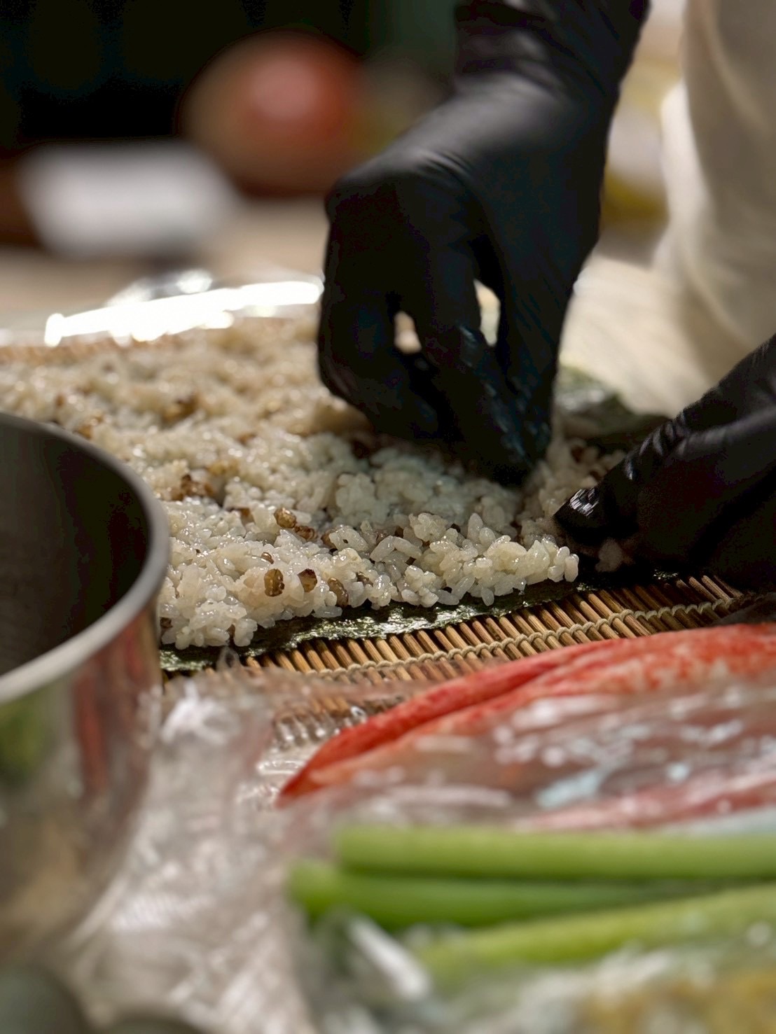 恵方巻きを巻き巻きして、そんなほぼ南を向いて食べました。